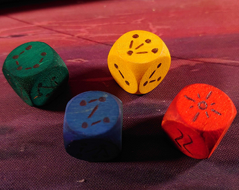 - Vous pouvez aussi utiliser des d6 classiques et convertir les scores en Motifs si vous n'avez pas de dés vierges sous la main.